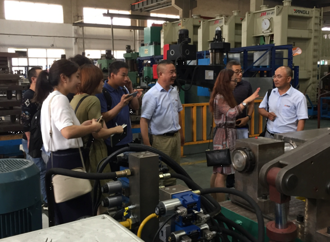 首先在營銷部銷售總監(jiān)江總、采購部呂永剛部長及總裁辦趙錦翔主任等人的帶領(lǐng)下,國家知識產(chǎn)權(quán)局一行參觀了我司產(chǎn)品展示區(qū)及生產(chǎn)車間,觀看產(chǎn)品的生產(chǎn)工藝流程。重點觀看調(diào)研我司自主研發(fā)的內(nèi)撐式滾圈機(jī)、鋼圈自動焊接裝置及鋼圈聯(lián)軸滾圈機(jī)的機(jī)械機(jī)構(gòu)和生產(chǎn)過程。深入了解了我司的產(chǎn)品特點和生產(chǎn)工藝工序,提出了很多寶貴的意見和見解。