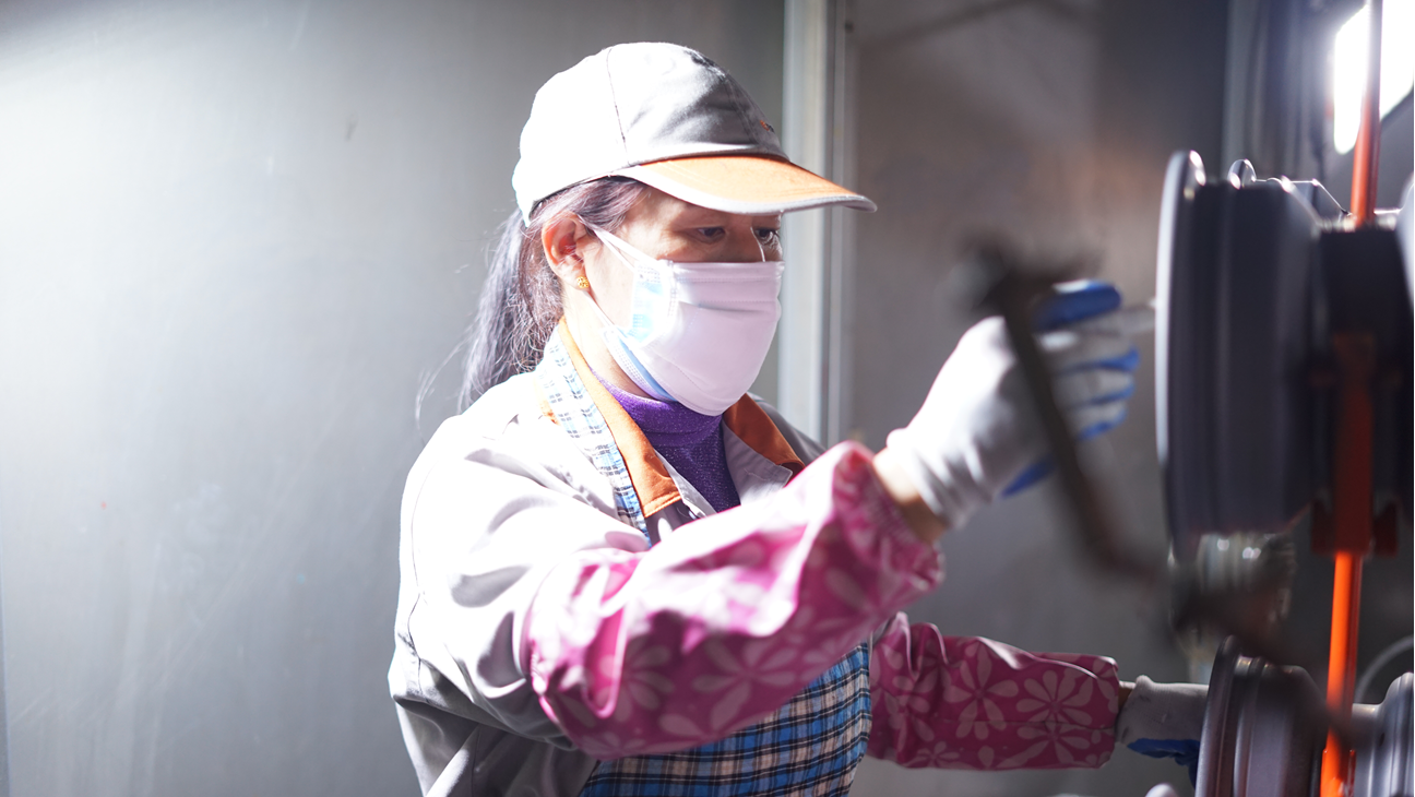 “剛開(kāi)始進(jìn)入崗位的時(shí)候,還是有些不太適應(yīng),只能強(qiáng)迫自己融入團(tuán)隊(duì),不斷提升自己技能,才能做好這個(gè)崗位。我在打磨產(chǎn)品的過(guò)程當(dāng)中,也慢慢發(fā)現(xiàn)只有精益求精打磨出來(lái)的產(chǎn)品才能夠使下一道工序減少不良的產(chǎn)生,也給其他工序帶來(lái)一定的幫助,自己也感到很快樂(lè)。特別是在工作時(shí)幫助他人不斷提高工作質(zhì)量,不斷專研打磨技巧,怎么樣用最快捷最方便的打磨技巧打磨產(chǎn)品,感覺(jué)到自己的進(jìn)步,于是慢慢的就喜歡上這份工作。”這是吳愛(ài)芳這份工作的簡(jiǎn)單總結(jié)。