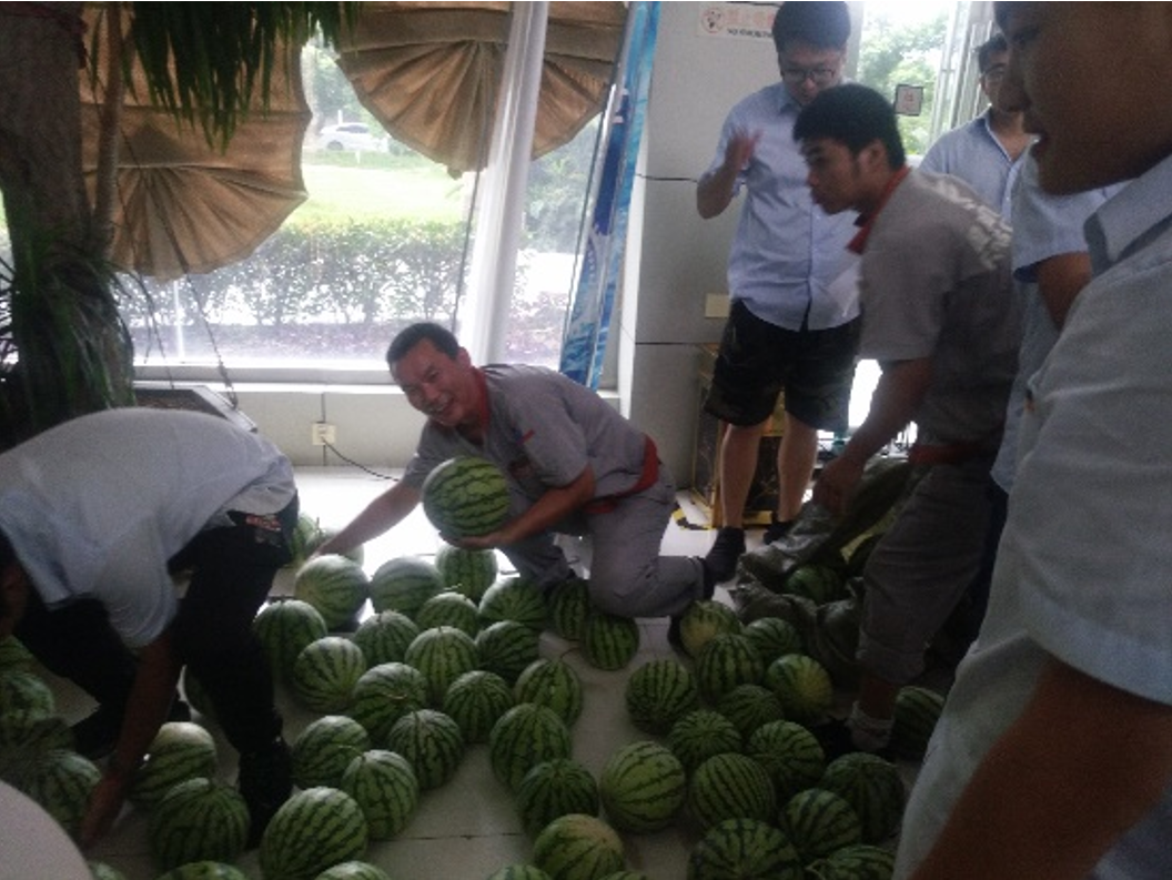 當(dāng)天,隨著鎮(zhèn)工會運(yùn)輸車的開進(jìn),企業(yè)各部門組織員工積極幫忙搬運(yùn),各個(gè)臉上洋溢著喜悅,大家一起幫忙將西瓜、飲品、防暑降溫等用品送達(dá)到員工手中,這意味著將公司的這份關(guān)懷傳遞到了員工們的心中,給炎炎夏日帶來了一縷清涼。
