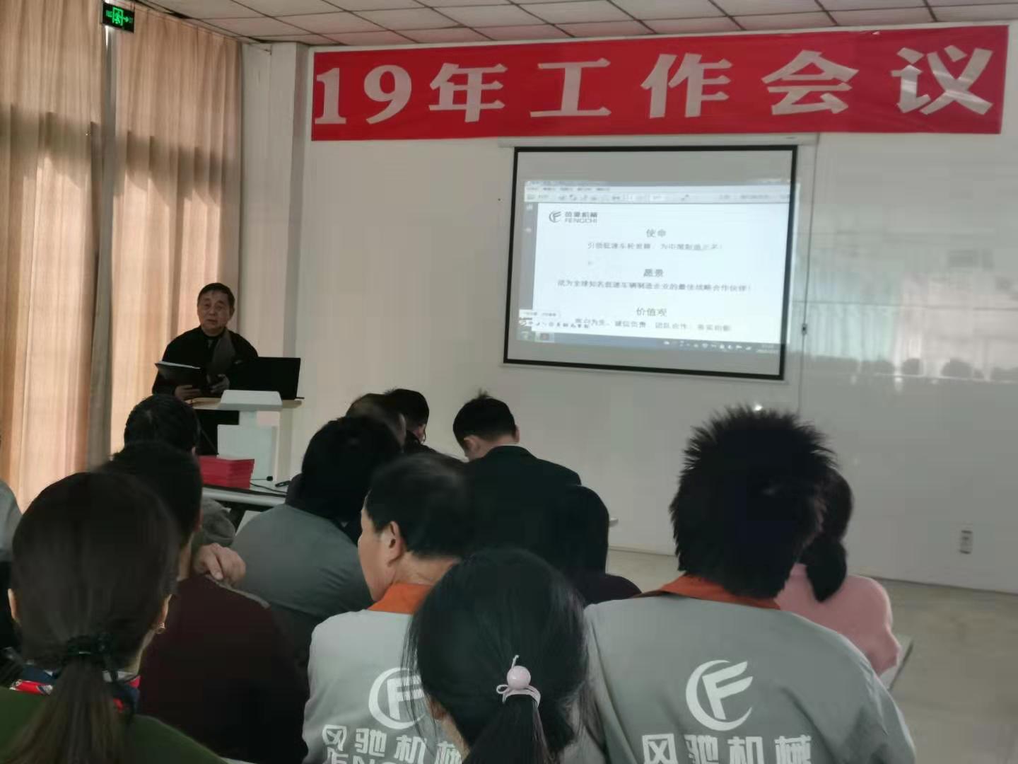 會(huì)議由風(fēng)馳車(chē)輪公司副總經(jīng)理陳景賢主持,總經(jīng)理李正華總結(jié)了2018年的工作,部署2019的任務(wù)。李總在會(huì)上提到在美國(guó)發(fā)起貿(mào)易戰(zhàn),經(jīng)濟(jì)下行壓力增大的嚴(yán)峻形勢(shì)下,車(chē)輪公司經(jīng)過(guò)全體員工的共同努力,取得銷(xiāo)售增長(zhǎng)二成的好業(yè)績(jī),開(kāi)發(fā)了鋁輪和工程圈兩項(xiàng)新產(chǎn)品,為今明兩年的發(fā)展打下扎實(shí)的基礎(chǔ)。2019年,我們更要凝心聚力,乘勝前進(jìn),出色完成“營(yíng)業(yè)收入2500萬(wàn)元,利潤(rùn)指標(biāo)9%,每萬(wàn)元產(chǎn)值工資含量不超過(guò)14.5%,客戶(hù)投訴少于15起,有等級(jí)的工傷事故0起”的年度計(jì)劃目標(biāo),以此來(lái)感謝總公司的扶持和關(guān)懷。