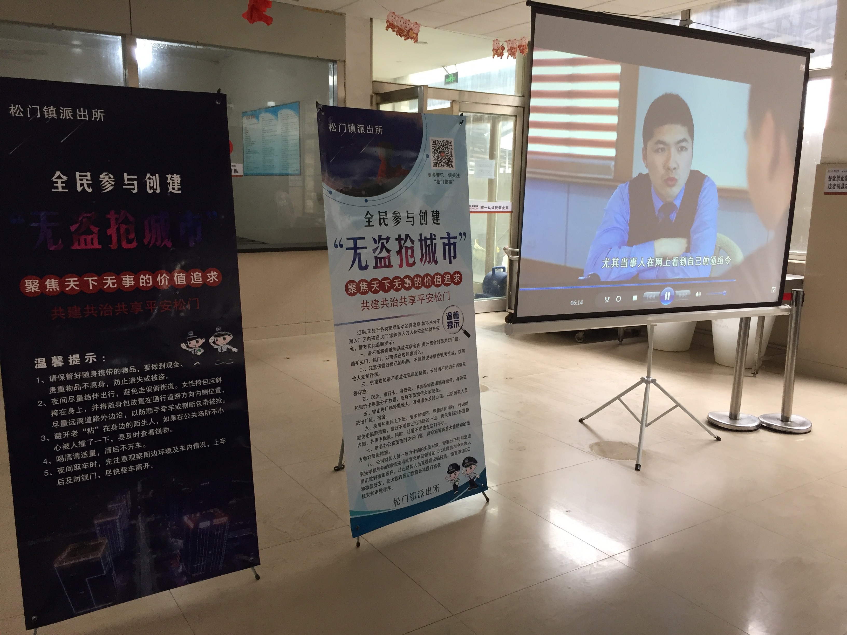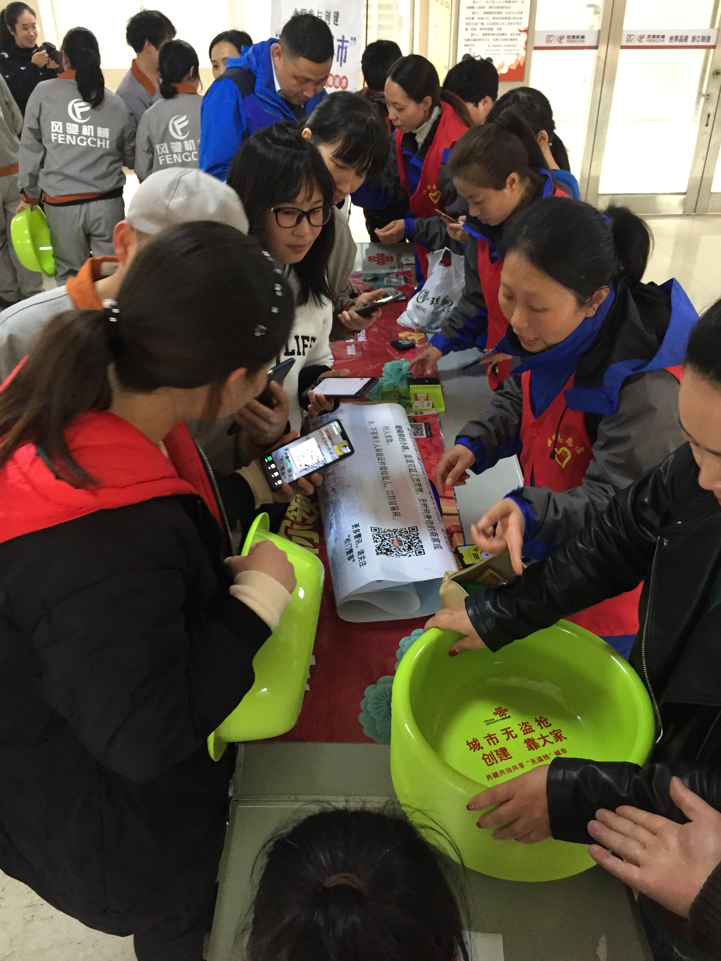 在聽講開始前,員工們紛紛配合民警掃碼關(guān)注了“無盜搶城市”二維碼,同時依序排隊領(lǐng)取了由派出所和聯(lián)通公司工作人員一起頒發(fā)的小禮品,各員工在領(lǐng)取禮品后,喜笑顏開,全神貫注的投入到視頻觀看、安全防盜意識聽講中。