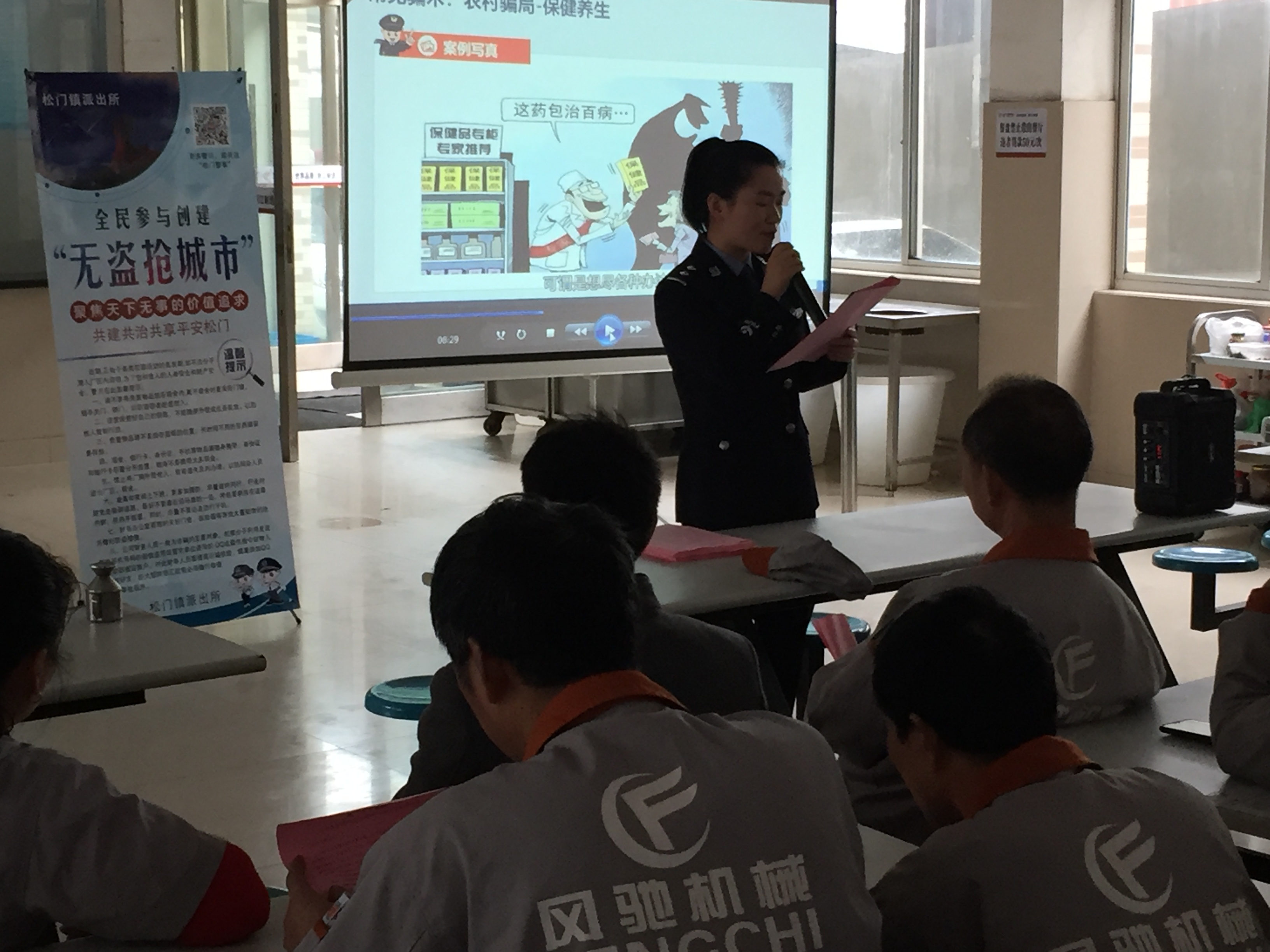 公司為了提高我企業(yè)員工的防盜、防強、防騙意識,同時大力支持創(chuàng)建臺州市“無盜搶城市”宣傳活動,在2019年3月20日下午,我司誠邀松門派出所人員前來給員工上了一堂防盜搶安全知識課,同時播放了創(chuàng)建“無盜搶城市”宣傳視頻。
