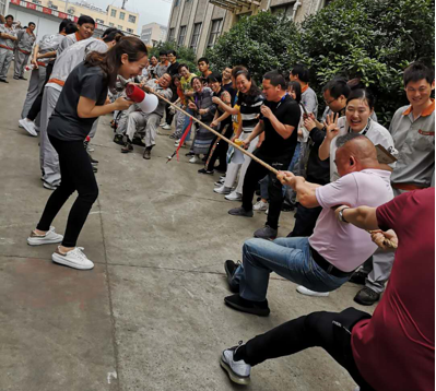 第一個項目比賽是拔河比賽,實行三局兩勝制,參賽隊員共十隊,由各個部門/車間組成。參賽人員不管是來自于辦公室還是各個車間,大家都早已做好了充分準備,奮力拼搏一下,此時大家都紛紛卷起袖子,咬緊牙關(guān),為團隊出盡力氣,每輪兩次比賽,交換位置,圍觀的人員在一旁大聲吶喊助威,場面很是壯觀和震感。辦公室人員雖不像車間員工每天在車間干力氣活,但在賽場上的氣勢絲毫不輸車間人員,最后通過各組角逐,研發(fā)中心在拔河比賽項目中“衛(wèi)冕奪冠”。